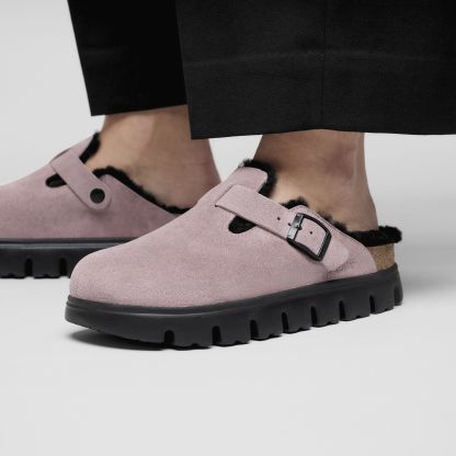 A chunky platform sole takes the Boston clog's iconic design to new heights—and your style along with it. A soft, genuine shearling lining keeps them in rotation through colder months. Velvety suede feels as classic as the original, with fresh perspective from the statement platform below. Designed around a contoured footbed, this style feels better and better with wear.